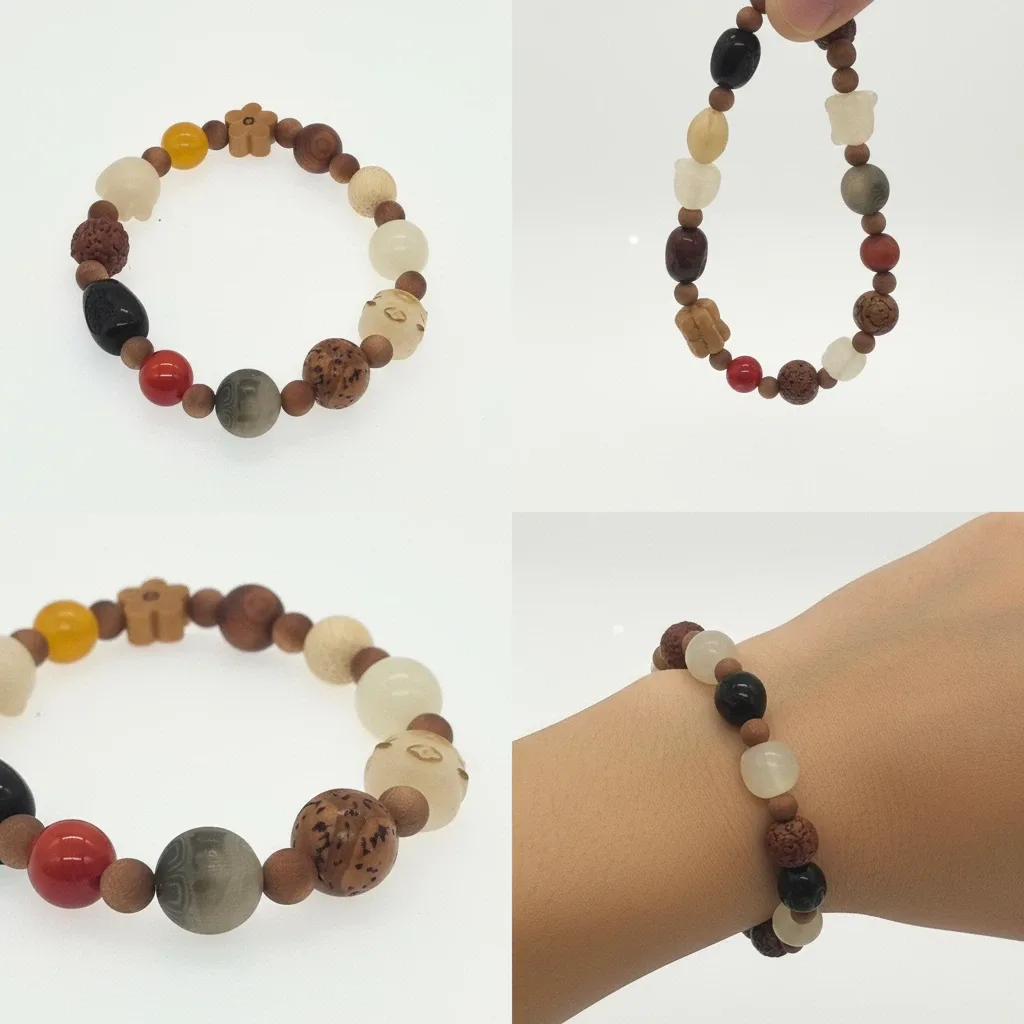 - Materials: Xingyue Bodhi, Tiger Eye, Toothless Bodhi, Rudraksha/Vajra Bodhi, Red Agate, Moonstone, and mixed natural beads