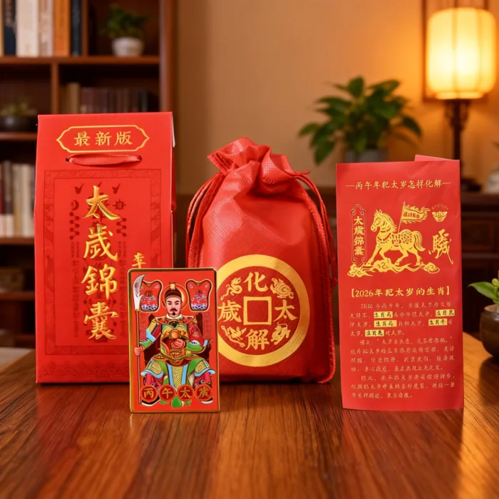 The 2026 Tai Sui Amulet Pouch is a traditional and powerful spiritual tool designed to protect individuals from the conflicting energies of the “Grand Duke Jupiter” (Tai Sui). In Chinese metaphysics, offending Tai Sui can lead to a year of instability, health concerns, or financial fluctuations. This meticulously curated set acts as a shield, inviting auspicious energy, safety, and prosperity into your life throughout the Year of the Fire Horse.