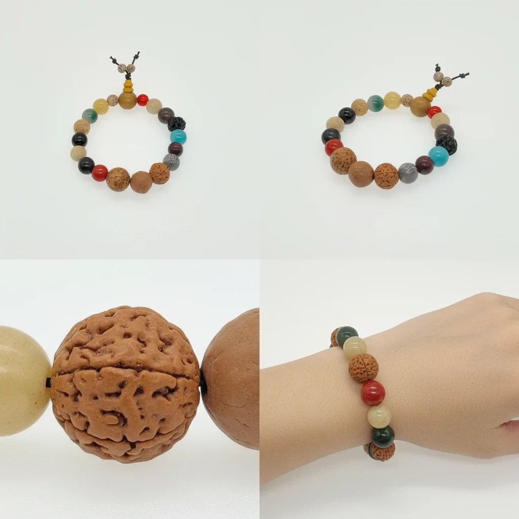 - Materials: Xingyue Bodhi, Tiger Eye, Toothless Bodhi, Rudraksha/Vajra Bodhi, Red Agate, Moonstone, and mixed natural beads