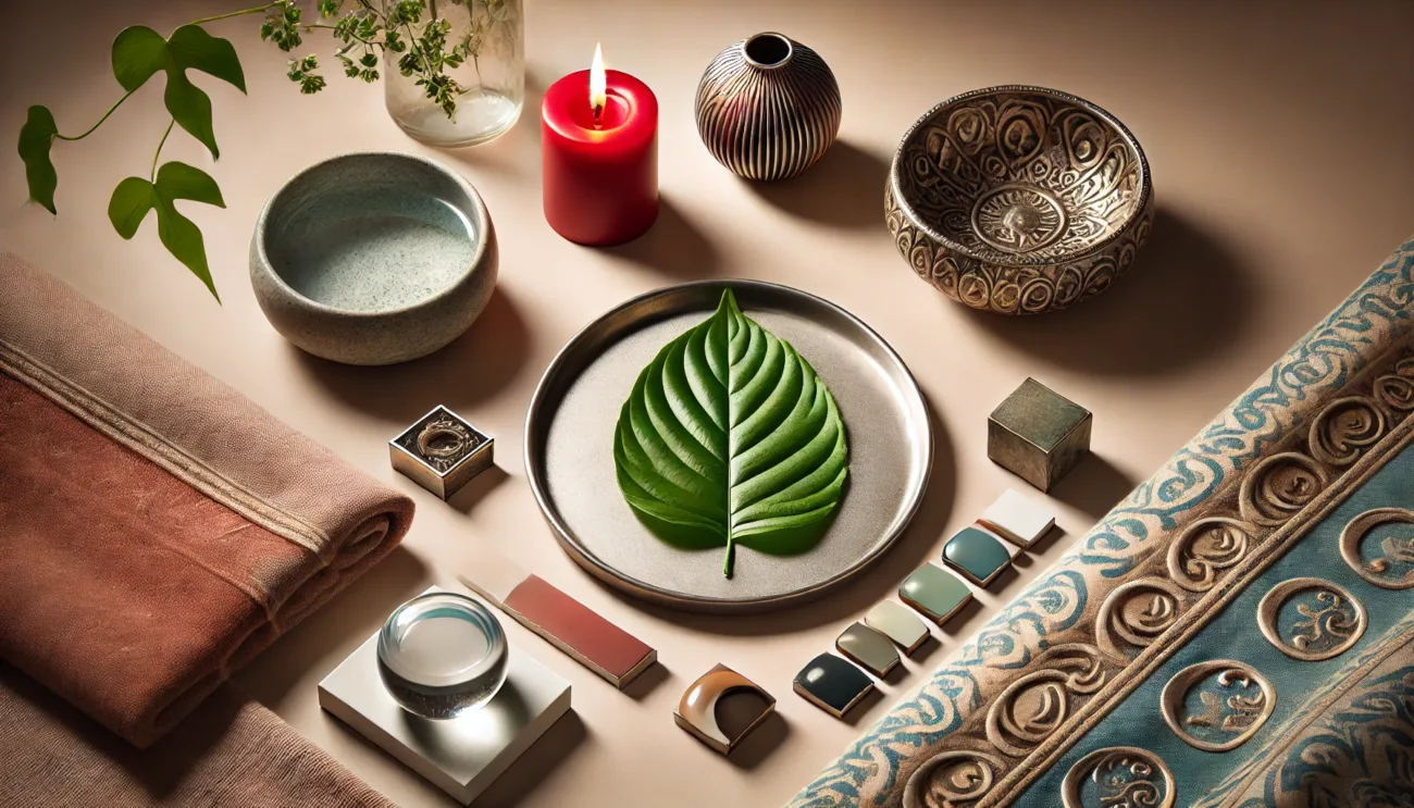 | 地球 | 穩定、接地、自我照顧 | 陶器、水晶、磚、方形或扁平形狀。. | 黃、沙、赤陶 |